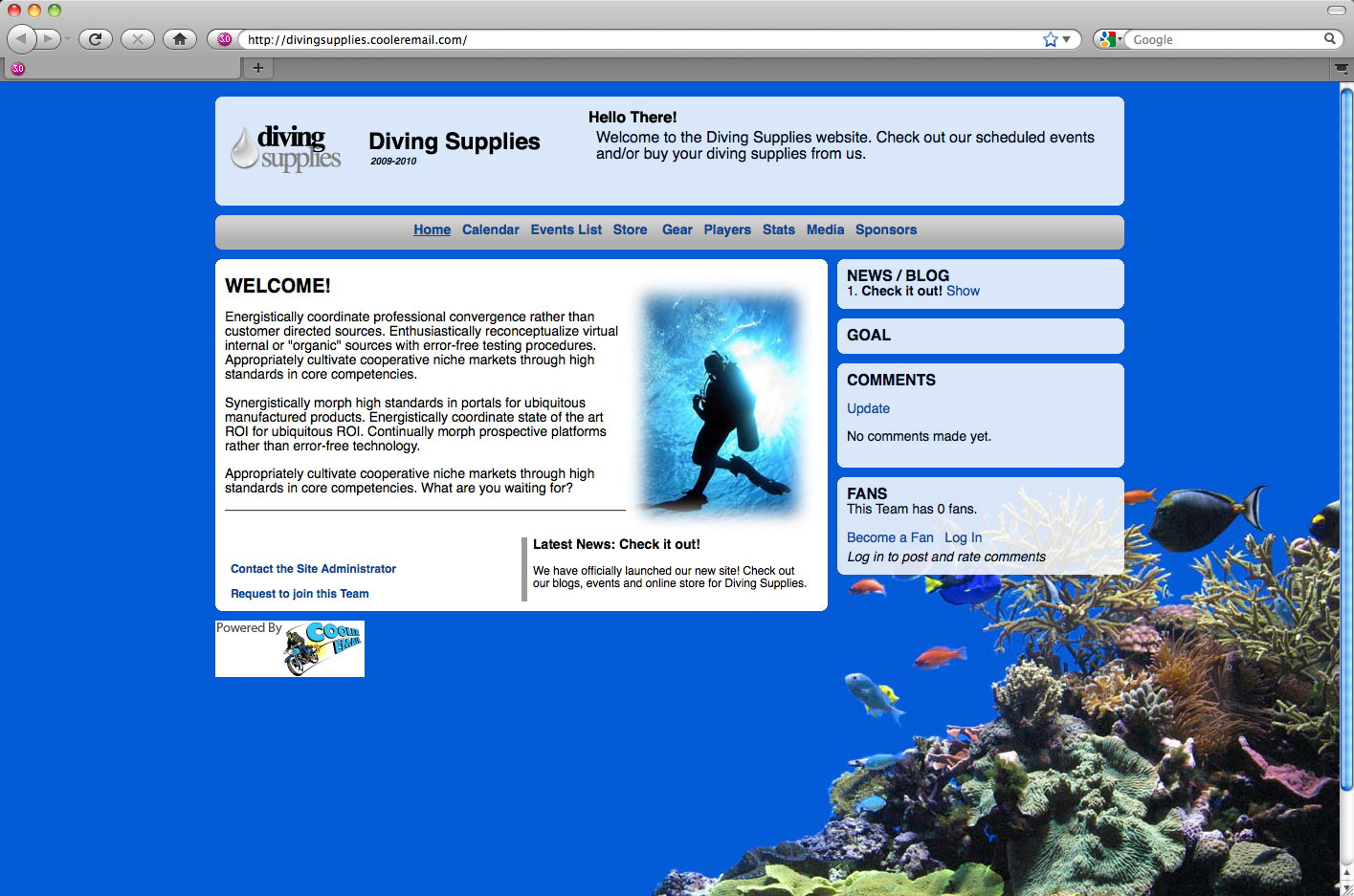 Fansites - Each team has a public-facing fansite that is controlled by the captain. This fansite has a calendar, roster, news, and fan comment sections to keep fans informed.